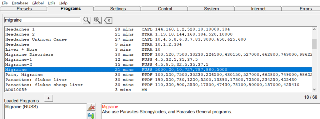 - Go to the Programs tab, search “migraine,”and you will find programs related to migraine. Double-click on the programs you need, such as the one in the screenshot.