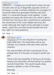 I have the devices Spooky2 Scalar running throughout the house. I do not (and cannot) feel or acquire my wife’s symptoms as the scalar field works on the individuals own DNA.