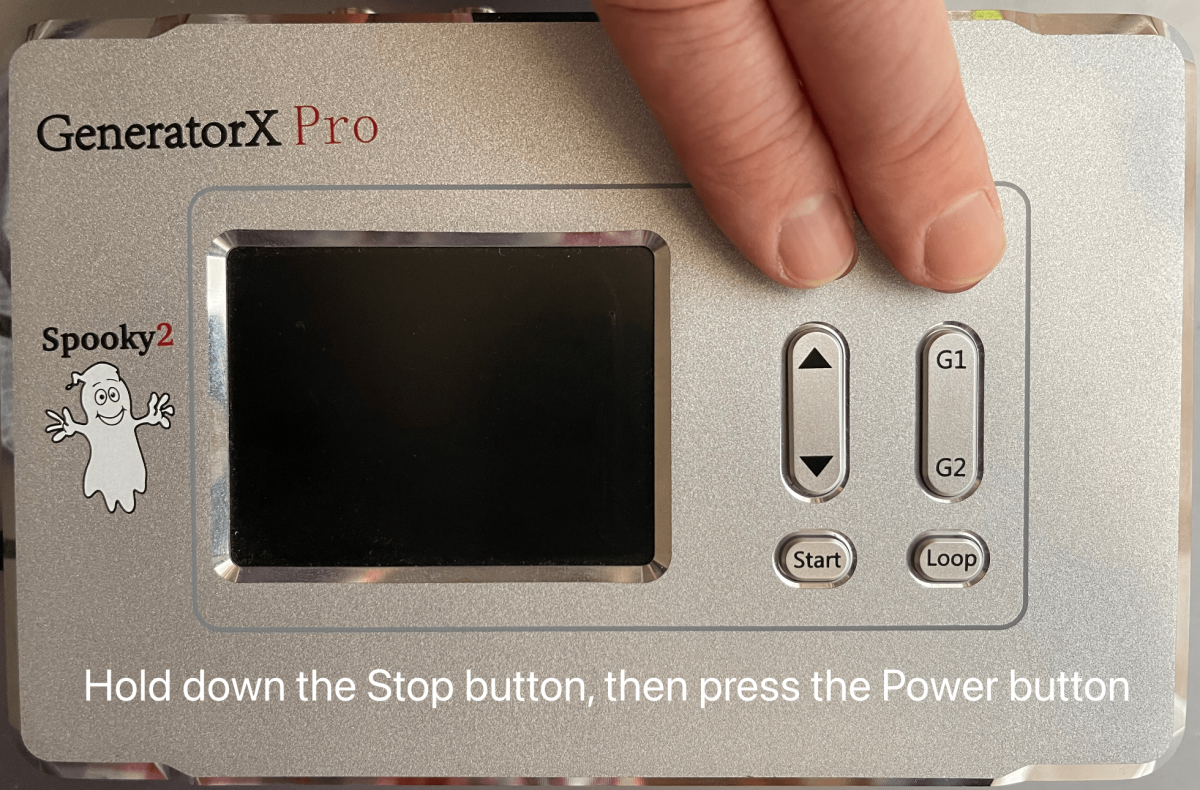 2. Put all connected GX Pro generators into programming mode by holding down the Stop button, and then pressing the Power button.