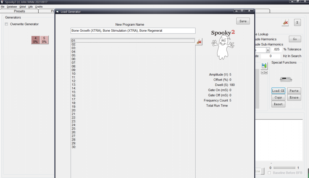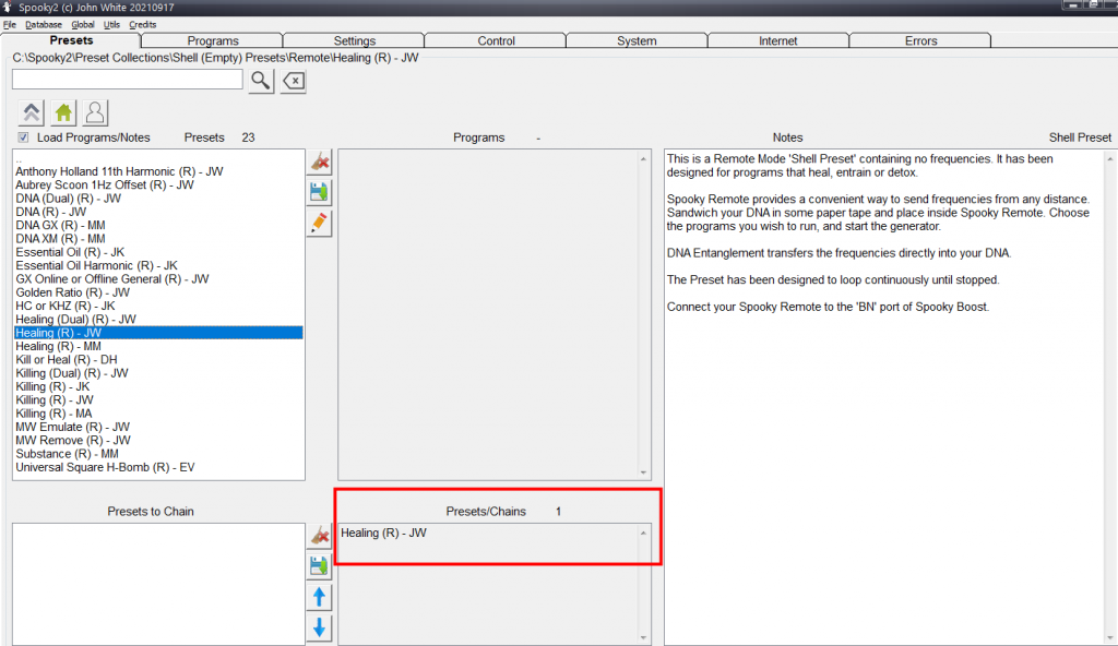 3. Launch Spooky2 software and choose presets and/or programs to run.